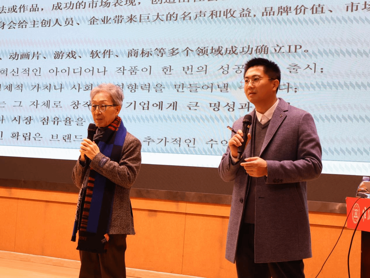 讲座的上半场,金明中教授以韩国公共广电EBS打造的卡通形象“朋秀”为例,深入阐述了 IP 产业在当下时代的重要意义。他指出,在全球化和数字化的浪潮下,IP 产业的发展潜力巨大,它不仅能够创造可观的经济价值,还能在传播文化、塑造社会价值观等方面发挥重要作用,成功的 IP 能够为媒体行业衍生出多元化的业务模式,是推动传媒产业发展的新动力源泉。