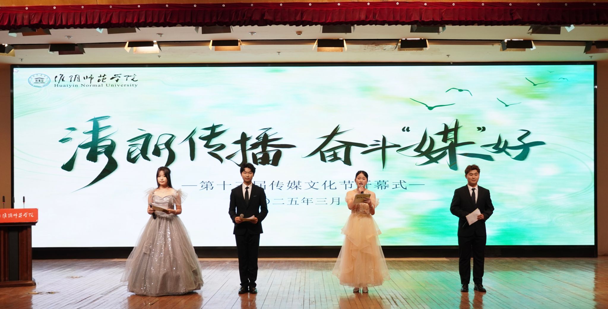 3月27日晚,由校党委宣传部、党委学工部、教务处、校团委、党委保卫部主办,新传学院承办的“清朗传播 奋斗‘媒’好”第十三届传媒文化节在图书馆报告厅开幕。相关主办单位负责人以及新传学院师生参加开幕式。
