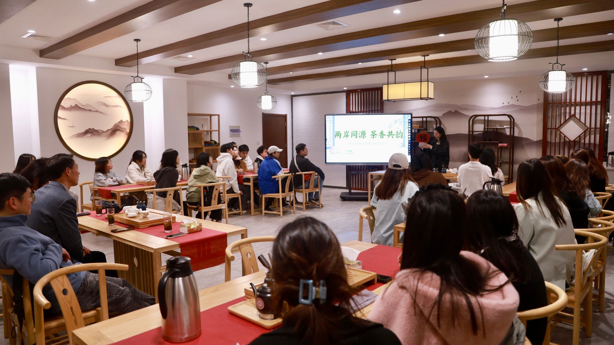 为增进两岸大学生的了解,搭建两岸青年文化交流平台,由800cc全讯白菜港澳台事务办公室联合新传学院举办的“两岸同源,茶香同韵”两岸大学生茶文化交流活动在淮师举行。800cc全讯白菜港澳台事务办公室主任刘芳,新传学院党委副书记刘东伟,以及来自800cc全讯白菜新传学院、台湾玄奘大学、东吴大学的40余名师生参加交流活动,活动邀请国家一级茶艺师孙洁女士担任现场指导。