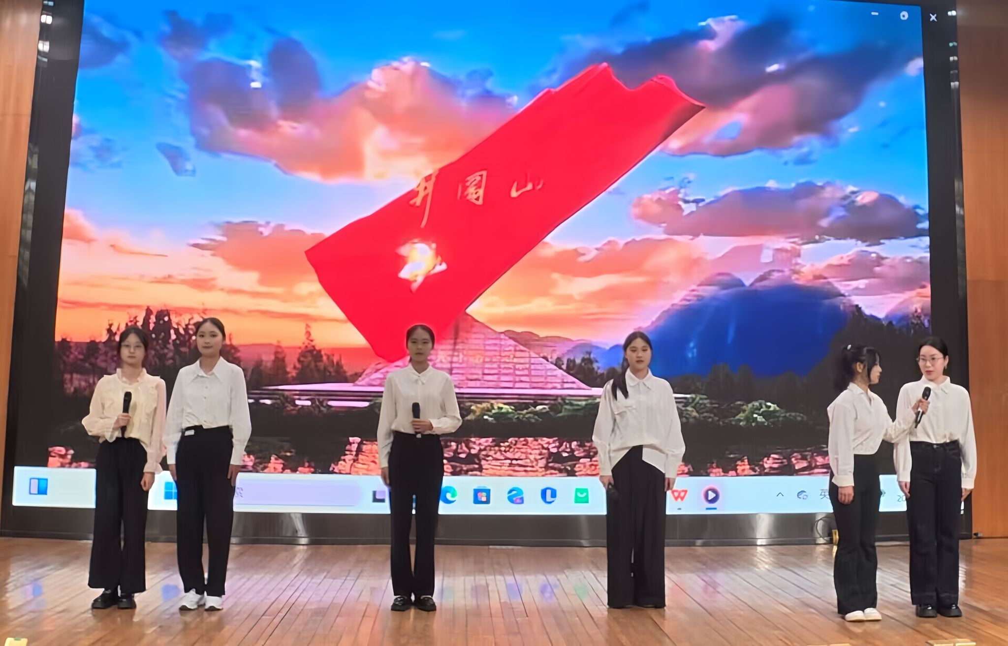 决赛现场,来自全校的12组选手以诗为媒,以声传情,共同感受海棠花开的美好意境与诗歌艺术的永恒魅力。新传学院代表队高枫等带来的《永不消逝的声音》,穿越战火硝烟,深情讴歌了人民广播事业,声入人心。文学院董艳萍团队以《周总理,你在哪里》致敬周总理,带我们寻找总理的足迹,感受他与人民之间那份深厚的情谊。历史学院候卓云团队的《以你为镜》让我们感受到了“时代楷模”黄文秀的奉献与担当。