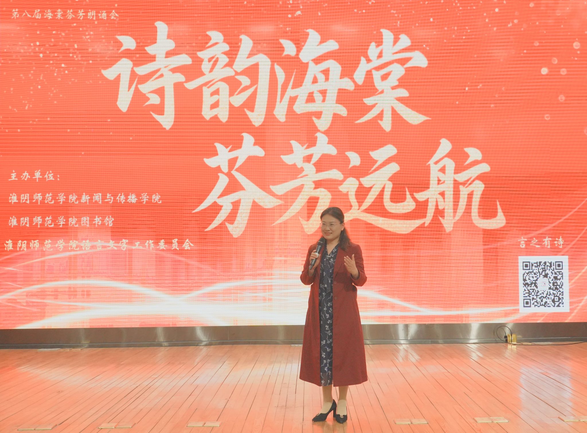 4月27日,由淮师语言文字工作委员会、图书馆、新传学院联合主办,言之有诗工作室承办的第八届海棠芬芳朗诵会决赛在图书馆多功能厅举行。教务处、研究生处、图书馆、新传学院等单位老师担任评委。