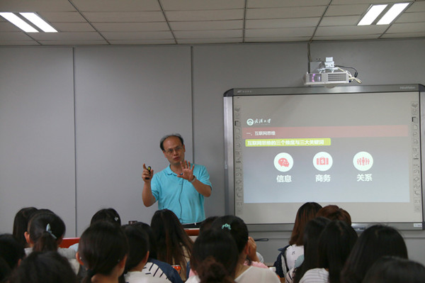 6月12日下午,武汉大学博士生导师程明走进淮师,为传媒学院师生作了题为《互联网思维与广告的变革》的精彩讲座。传媒学院院长史晖主持讲座。