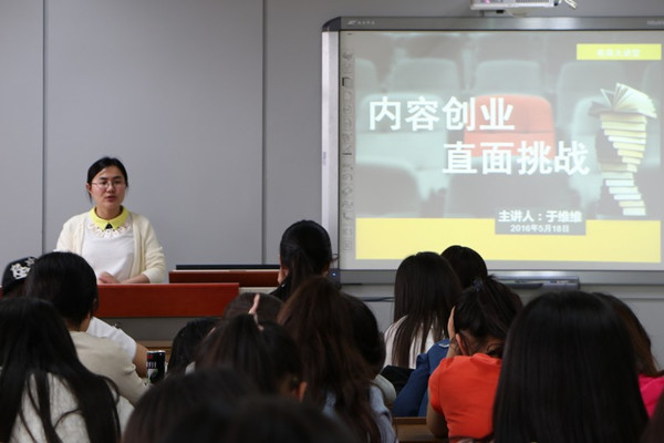 于维维还与同学们分享了自己从事媒体行业以来的感受:“新媒体时代,自由媒体人开始了更加规模化、组织化、系统化、生态化的媒体创业。自由媒体人,正在用一种更加符合市场要求的、新的组织形式协同联动,开辟属于媒体人的全新时代——‘媒体+’时代。”