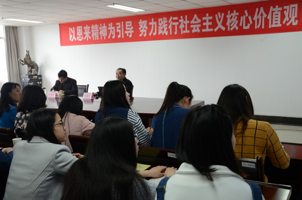 4月8日下午,传媒学院邀请校关工委常务副主任、周恩来研究会会长王家云教授在院会议室作“以恩来精神为引导,践行社会主义核心价值观”的主题报告,传媒学院党委书记沈东华主持,学院14、15级学生代表参加了报告会。
