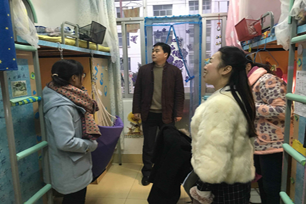 会后,传媒学院党委书记沈东华与辅导员前往学生宿舍,查看学生到校状况,叮嘱大家调整好精神状态,以崭新的面貌投入到学习之中去。