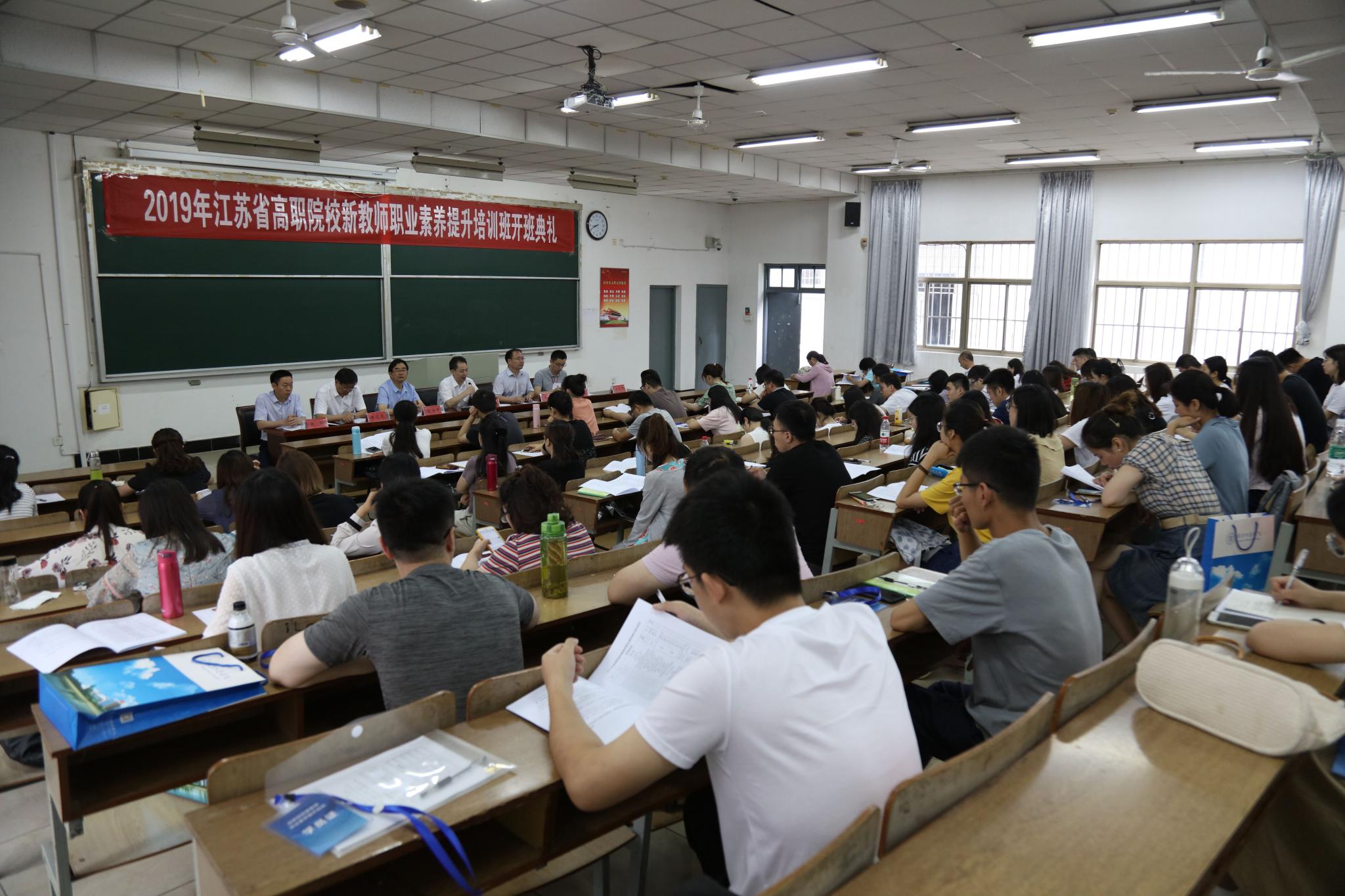 7月9日,2019年江苏省高职院校新教师职业素养提升培训在800cc全讯白菜开班。800cc全讯白菜副校长施军、江苏财经职业技术学院校长程淮中、800cc全讯白菜教务部部长周平等以及来自全省36所高职院校的71名参训学员参加了开班仪式。传媒学院院长史晖主持仪式。