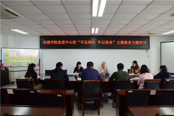 10月9日上午,传媒学院举行“不忘初心、牢记使命”主题教育第11次集中学习。省委主题教育第13巡回指导组副组长朱子华、成员杨艳莅临传媒学院指导主题教育活动。