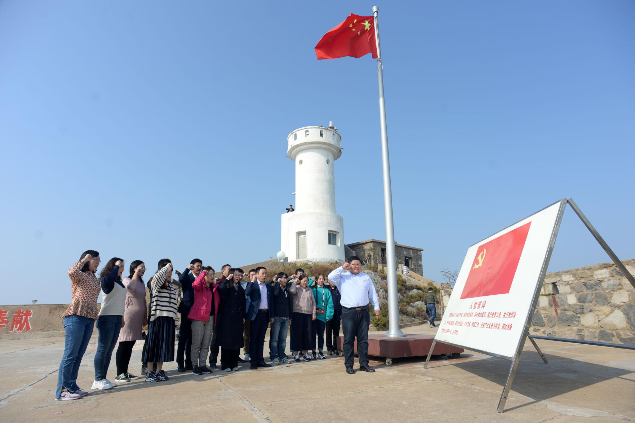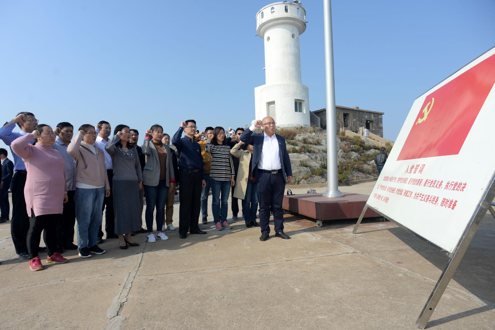 随后,大家来到升旗广场、王继才铜像和瞭望塔,踏寻守岛足迹,被王继才夫妇无怨无悔、坚守付出的爱国奉献精神深深感动。三个学院党员分学院面向党旗重温入党誓词:“我志愿加入中国共产党,拥护党的纲领,遵守党的章程,履行党员义务,执行党的决定,严守党的纪律,保守党的秘密,对党忠诚…”。在鲜艳的党旗下,组织开展了“四重四亮”活动,传媒学院教师党员王帅等同志重读了“入党志愿书”。大家认为:在重温志愿书的同时,坚定了当年的入党初心,也更加坚定了理想信念,同时让党员回忆起入党的那一天,重新点燃当年的激情,时刻提醒自己的党员身份。