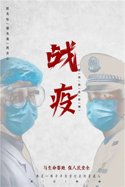 作品寓意:在作品中运用了医生和警察,医生是如今奔赴在前线保护人民健康的英雄,警察这个职业是一旦有危险时刻都奔赴在前线保卫人民的人身安全以及财产安全,他们都是保卫人民,时刻以身涉险的大英雄,现在的医生就相当于是保护我们的“警察”,所以运用了医生和警察来作为作品的主体。“疫”情就是警情,在于突出疫情发展的紧急,对人们也起到了警醒的作用,整体画面色调偏浅,只有战“疫“为大红色,突出画面主题。