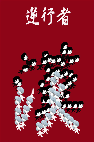 作品寓意:作品下面是一个武汉的汉的繁体字,白色的小人代表白衣天使,黑色的小人都在躲避病毒往外跑,只有白衣天使在往里跑,在一线上战斗,所以称他们为逆行者。