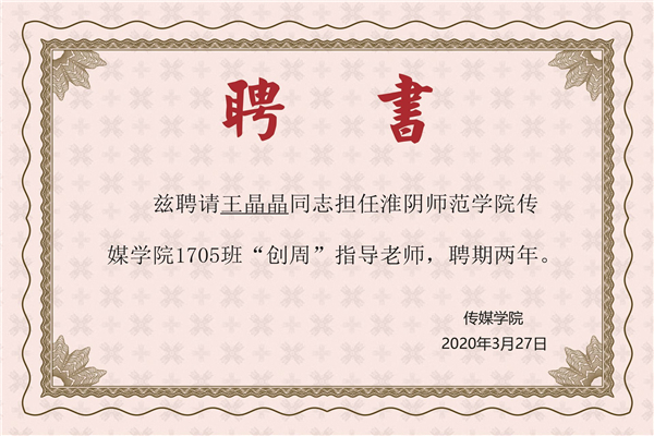近日,800cc全讯白菜传媒学院在线上举行一场特殊的聘任仪式,聘任淮安市第二批援鄂医疗队副队长王晶晶为该院的“周恩来班”创建指导老师。