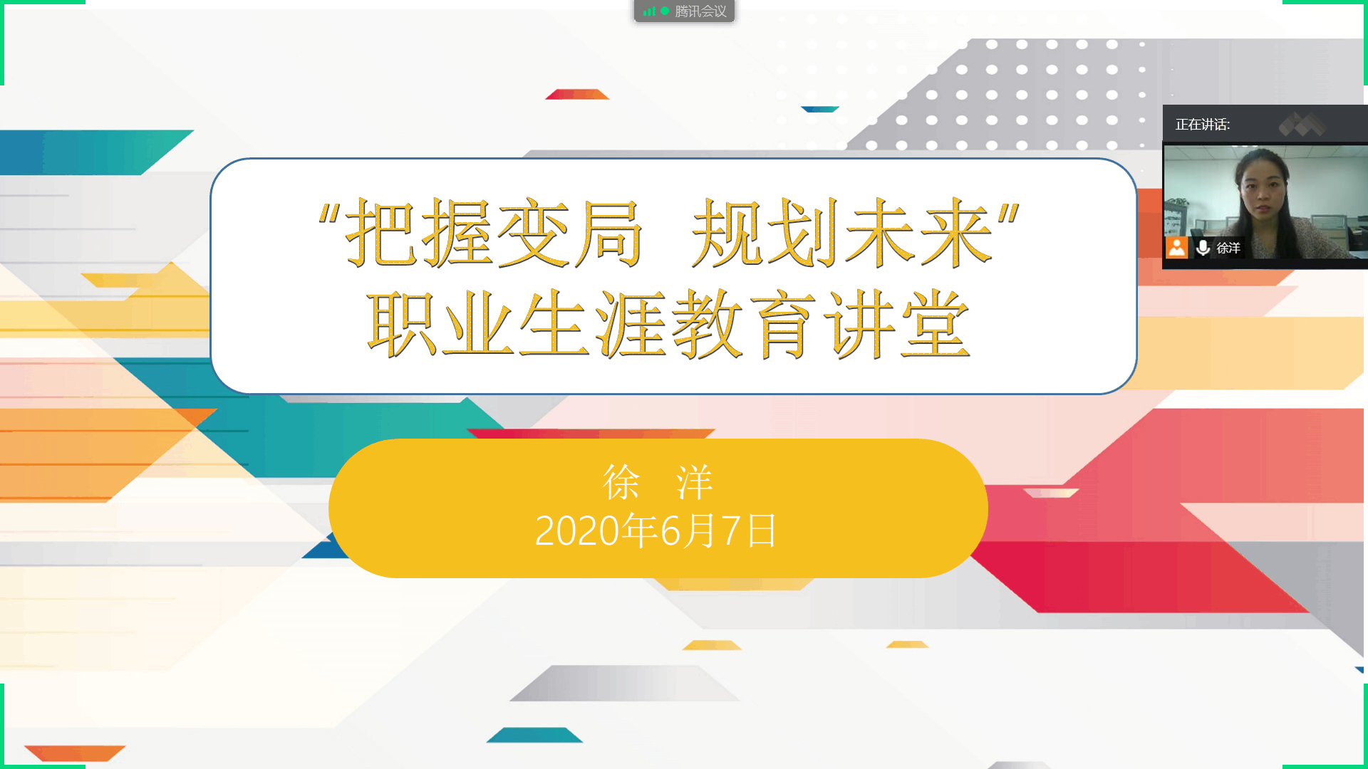 为了帮助2021届毕业生了解最新的就业政策,制定科学合理的职业生涯规划,传媒学院于6月7日下午开展了线上“把握变局 规划未来”职业生涯教育讲堂。本次活动由就业工作辅导员徐洋主持,2021届全体毕业生参加。