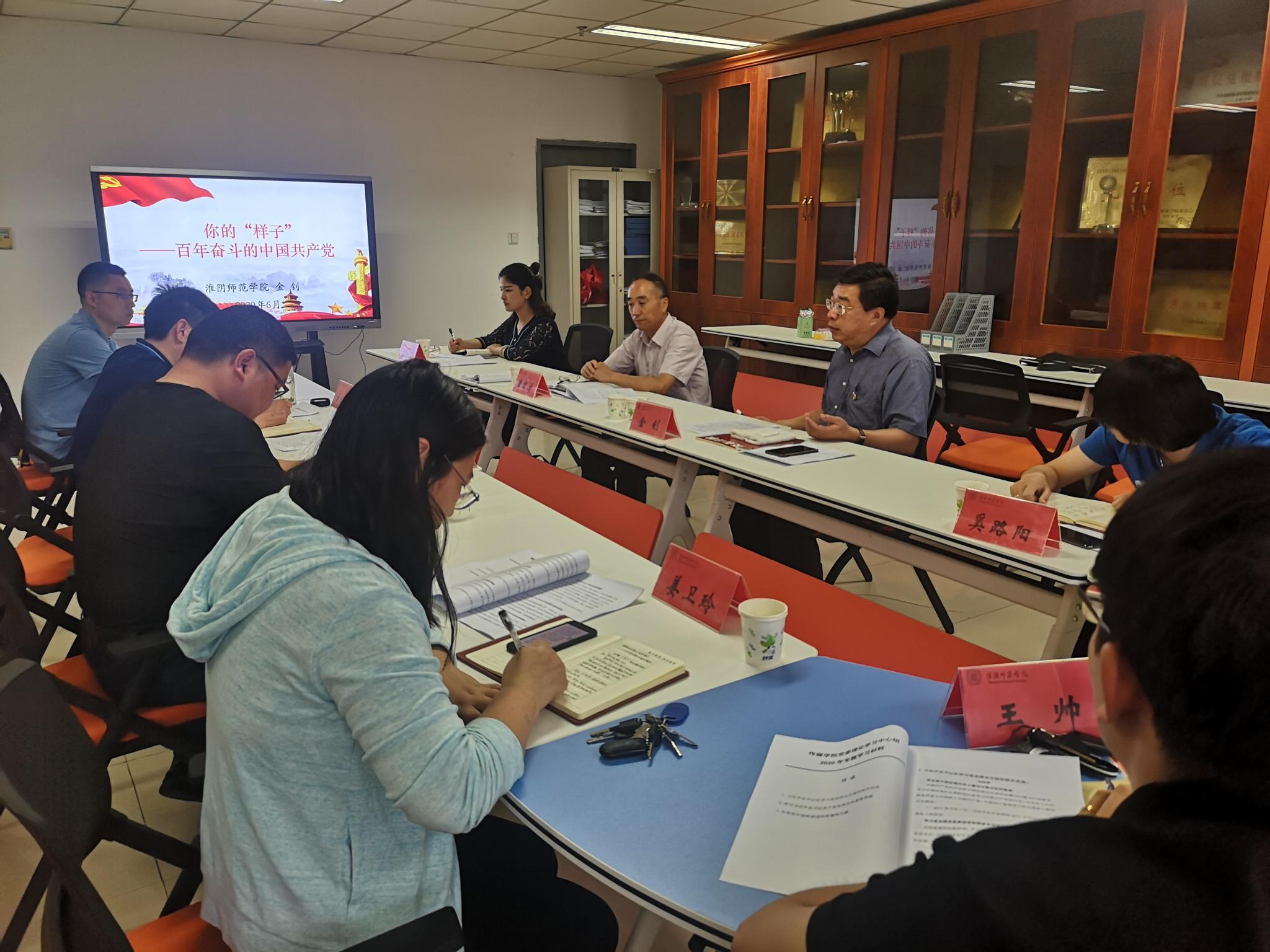 传媒学院院长史晖领学了《新中国史的主线:为人民谋幸福》用具体的数据对比分析从新中国成立至今人民在生活上的种种变化,体现中国共产党“人民至上”的准则。支部书记王帅从专业角度领学了《改革开放对中国电影的影响》,支部书记陈岩结合工作实际,领学了《学党史、树榜样,争做有责任担当的青年大学生》。