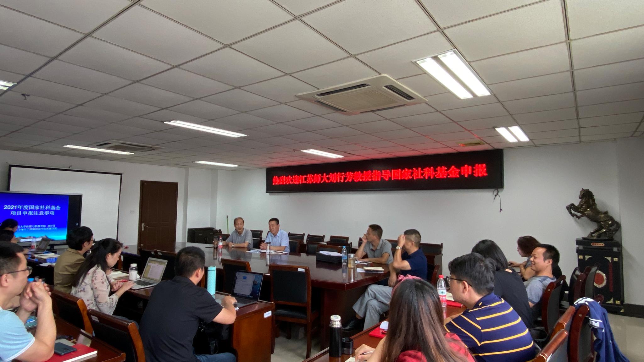 2020年9月16日下午,传媒学院2021年度国家社科基金项目申报专题辅导会在学院会议室举行。本次辅导会邀请了江苏师范大学刘行芳教授做报告,学院全体专任教师参加。会议由传媒学院院长史晖教授主持。