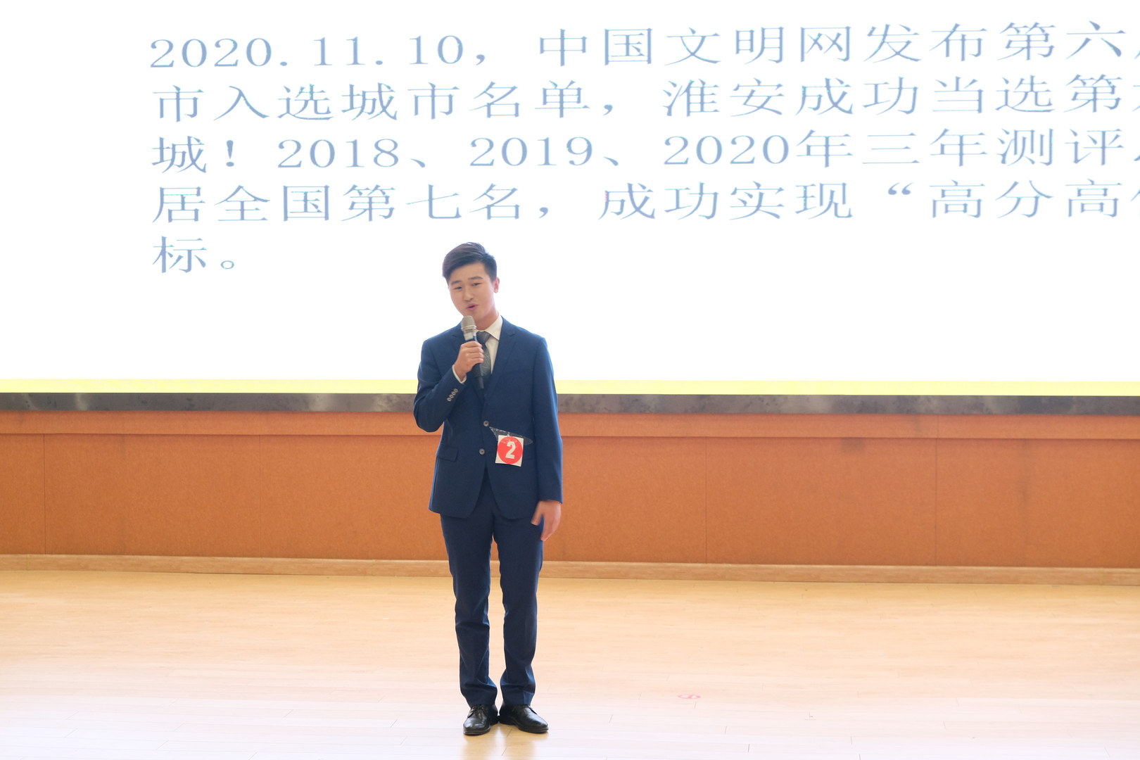在主题演讲环节,传媒学院葛锦融围绕“淮安当选全国文明城市”热点话题,鼓励大家从小事做起,做文明人、行文明事;美术学院刘苏洋用身边故事弘扬 “坚守朴实,追求崇高”的淮师精神;音乐学院何欣怡就“双11”快递垃圾的问题进行了解读,也为当下年轻人的快递盛况敲响警钟。在才艺展示环节,葛锦融扇子舞《纸扇书生》诠释了他的书生意气;传媒学院王智超同学一首欢乐的快板将现场的氛围推向高潮;文学院周佳徐同学《你的答案》唱出了“疫”往无前的英雄气概;文学院马腾同学一首《夏天的风》将大家带回美好的夏天。