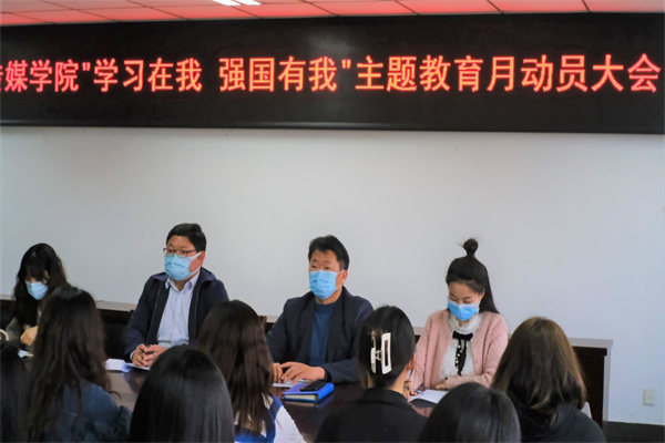 3月11日下午,传媒学院召开“学习在我,强国有我”主题教育月动员大会,传媒学院党委书记王管、副院长陈文华、党委副书记刘东伟、全体辅导员及各班级学生代表参加。