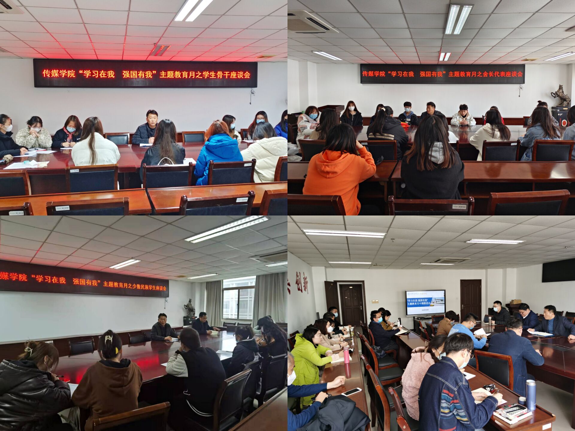 分类访查谋发展。学院召开教师代表、少数民族同学、学生骨干代表、舍长代表等不同层面的座谈会5场,认真听取不同层面同学对学院学风建设方面的意见和建议,并持续实施“533学风提升工程”“课堂晚自习四去工程”等特色举措,切实推动学生学习学风的科学发展。