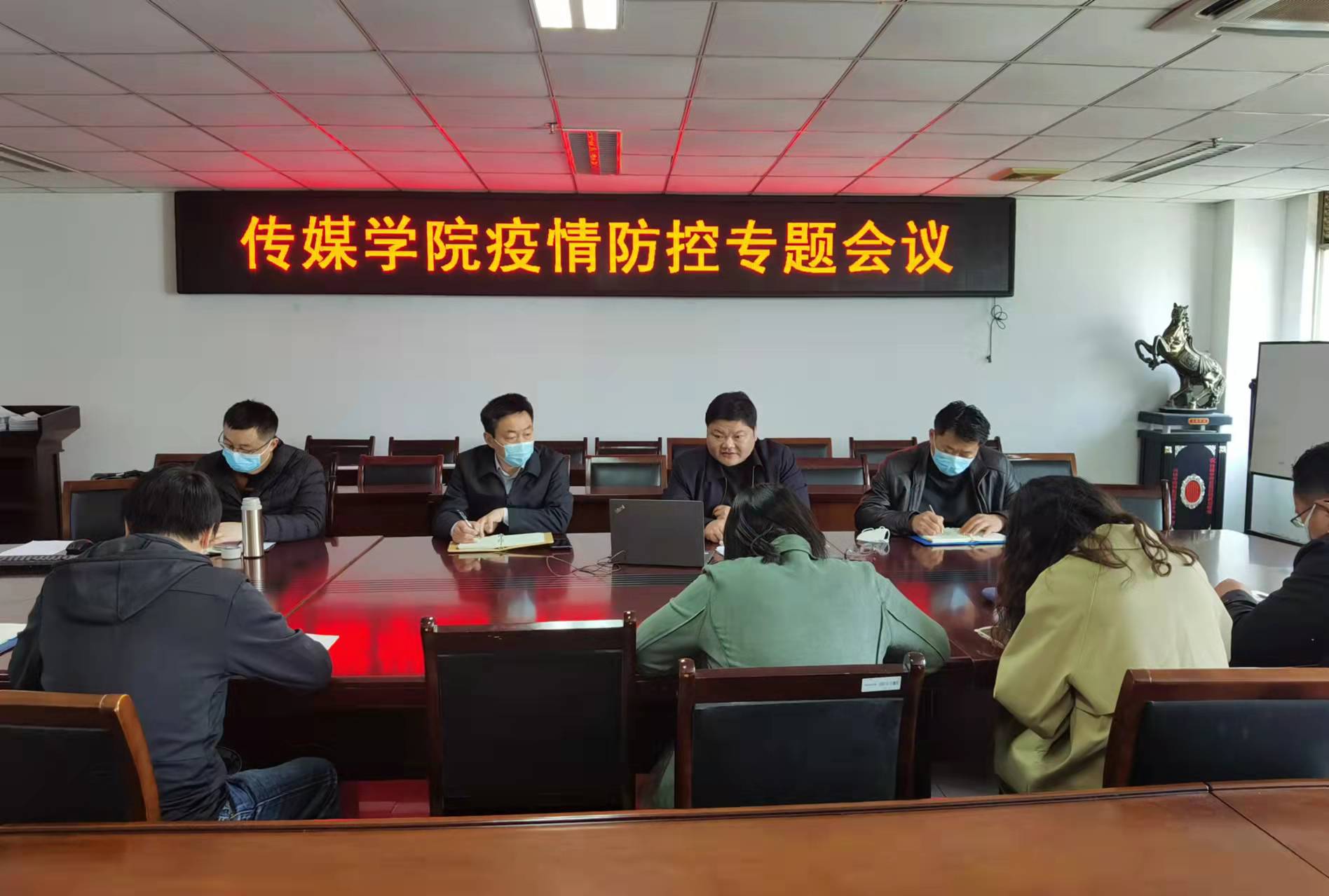 会前,学院召开疫情防控专题党政联席扩大会议,学习相关会议精神,讨论《传媒学院突发新冠疫情应急处置预案》。