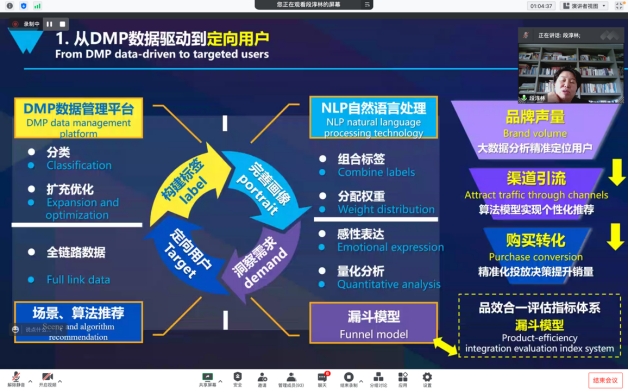 段淳林首先从网络广告发展的整体规模、数字技术驱动下的广告行业变革、用户需求的变化等几个方面介绍了中国计算广告发展的时代背景,阐述了计算广告的内涵,并结合丰富的案例分析了计算广告的特征:一是以细粒度用户洞察为逻辑起点,二是以智能化信息内容为重要载体,三是以智能算法为核心,四是以场景互动为关键驱动,五是以优化为品牌资产提供引擎。在此基础上,段淳林围绕基于用户侧的心智计算的营销科学化、以逆价值链增长为核心的计算广告发展模式、基于智能化交易的广告代理商业模式、基于多屏硬件的智能计算物联网广告发展以及计算广告数字化新生态等六个方面,对中国计算广告的发展趋势进行了分析。在讲座的互动环节,段淳林就“如何在智能广告发展当下科学调整广告学专业教学模块以体现专业性”、“文科类专业出身的广告学专业教师如何接纳、学习数字技术并有效融入进教学过程”等问题进行了深入交流。
