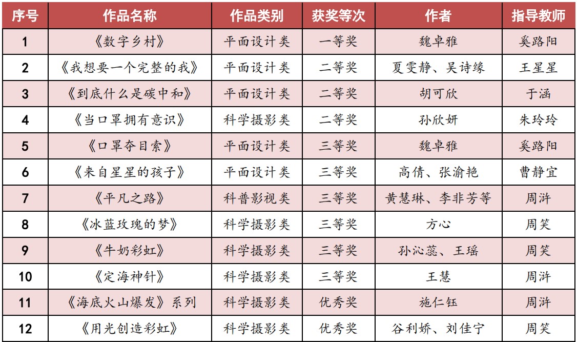 9月15日,由省科协、省委宣传部、省教育厅、省文化和旅游厅、省广播电视局、团省委联合举办的第八届江苏省科普公益作品大赛颁奖仪式在省科技工作者活动中心举行,传媒学院推荐的作品获得一等奖1项、二等奖3项、三等奖6项。其中由奚路阳老师指导、魏卓雅同学创作的《数字乡村》平面设计作品荣获一等奖,这是我院连续四届在该项比赛中获得一等奖。