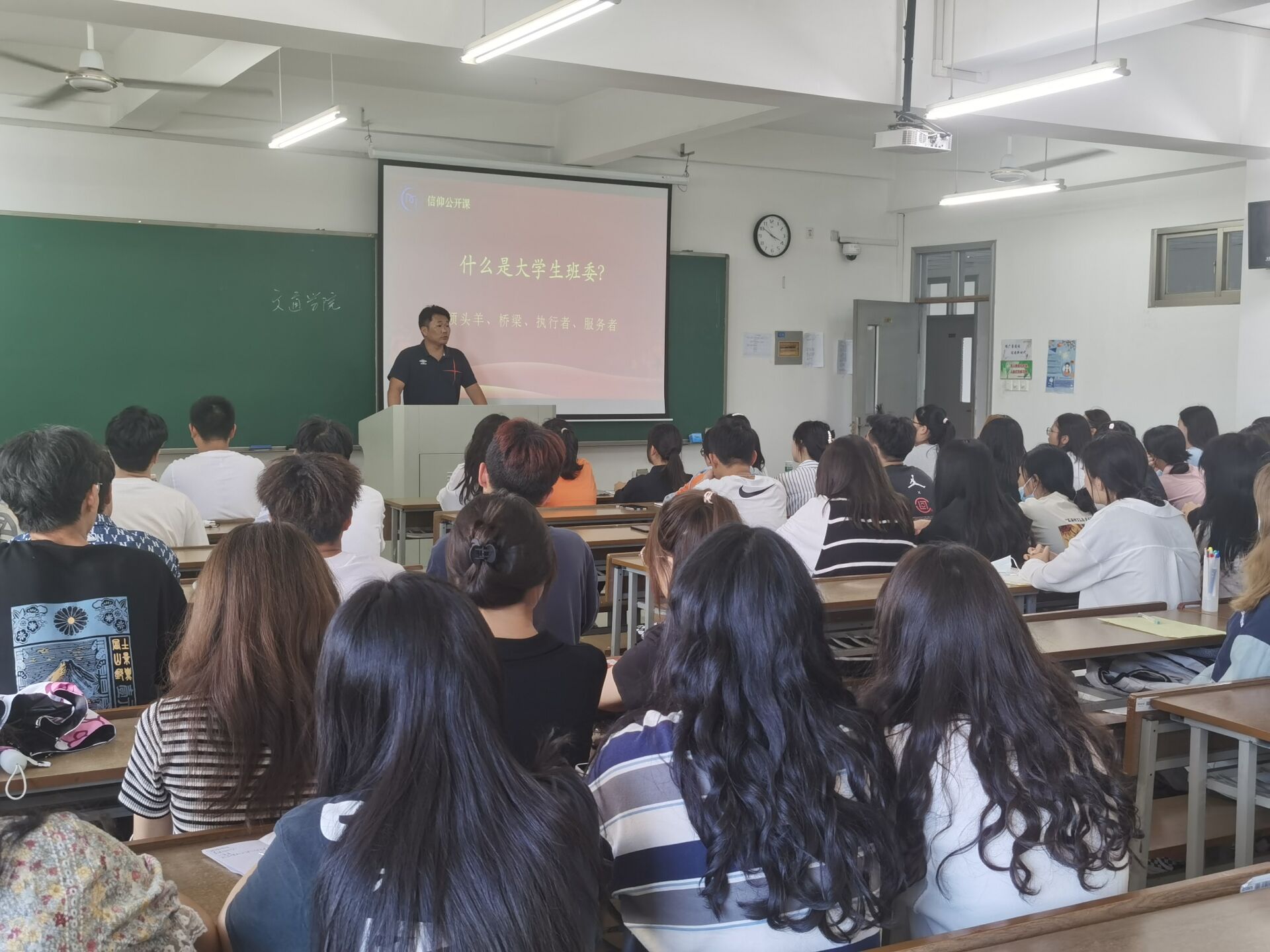 刘东伟围绕“大学生班委”的角色定位,从是什么、为什么、怎么做三方面展开,要求学生干部明确职责,提高责任意识,不断创新工作思路,努力做敢想敢为、善作善成的新时代好青年。