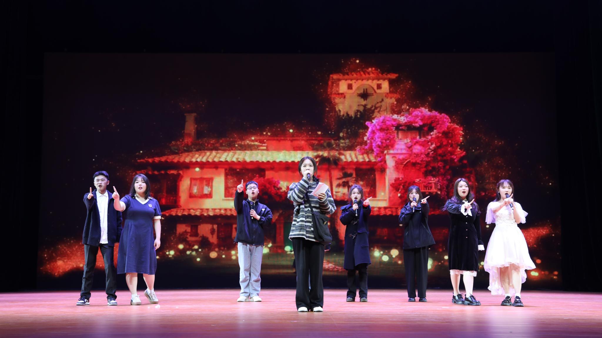 舞蹈串烧、T台秀、歌舞剧等节目缤纷上演,传媒学子吟唱的是青春激昂旋律,演绎的是青春信仰力量,以“声”筑梦,“舞”动2023。配音秀《传媒青春正当时》以声传行,在演绎童年经典影片中续写传媒学子未完待续的青春;情景剧朗诵《青春的无限可能》展现传媒学子学习生活就业的点点滴滴,激励大家在奋斗中创造更多的精彩。淮安广播电视总台主任播音员许洁、新闻主播袁志超带来的嘉宾表演将现场气氛推向高潮,朗诵极具穿透力、震撼力。