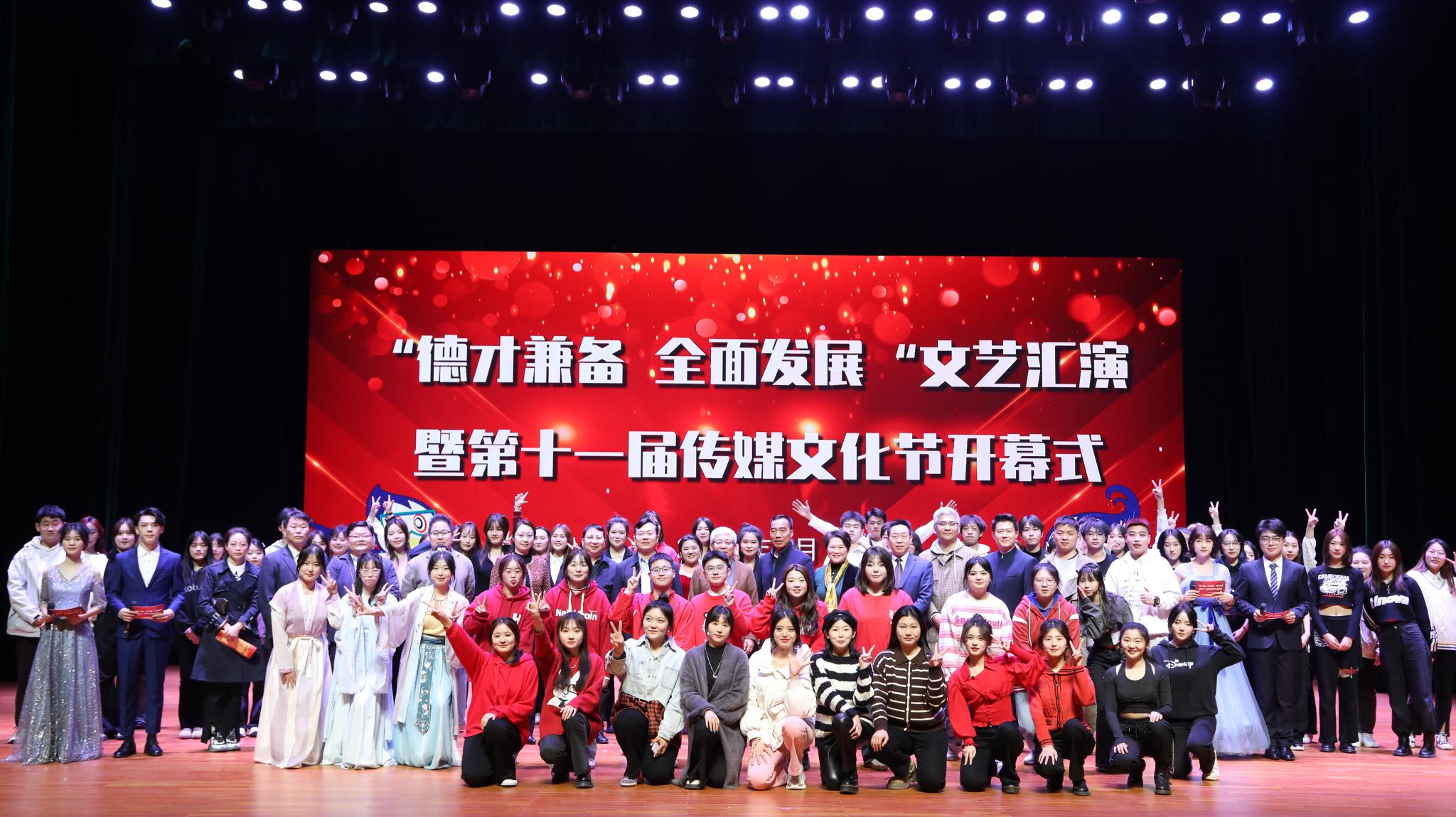 文艺汇演在传媒学院院长史晖的精彩致辞中开启,从“全心·启航”“全力·奋斗”“全面·奔跑”三个篇章层层展开。主办单位党委宣传部、党委学工部、教务部、团委等部门负责人和承办单位传媒学院负责人共同按下本届传媒文化节的“开启”按钮。