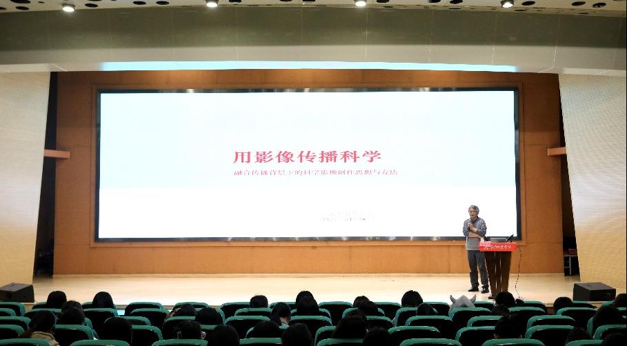 4月6日,江苏省首席科技传播专家、江苏广电总台教育频道总编室主任、江苏省科教电影电视协会秘书长张学超应邀走进传媒学院,带来“用影像传播科学——融合传播背景下的科学守护人”专题讲座。讲座由传媒学院副院长陈文华主持,2020、2021、2022级学生到场学习。