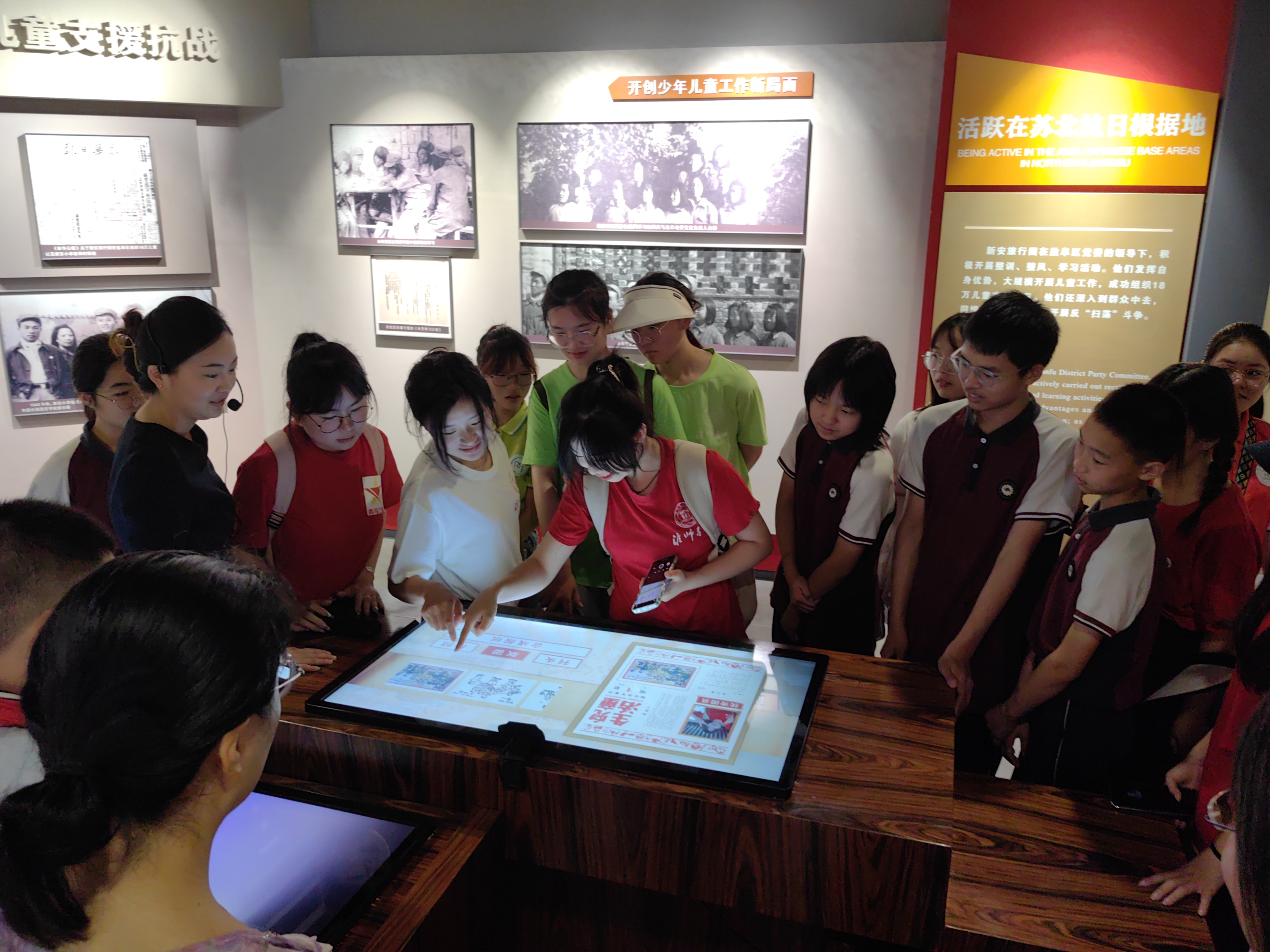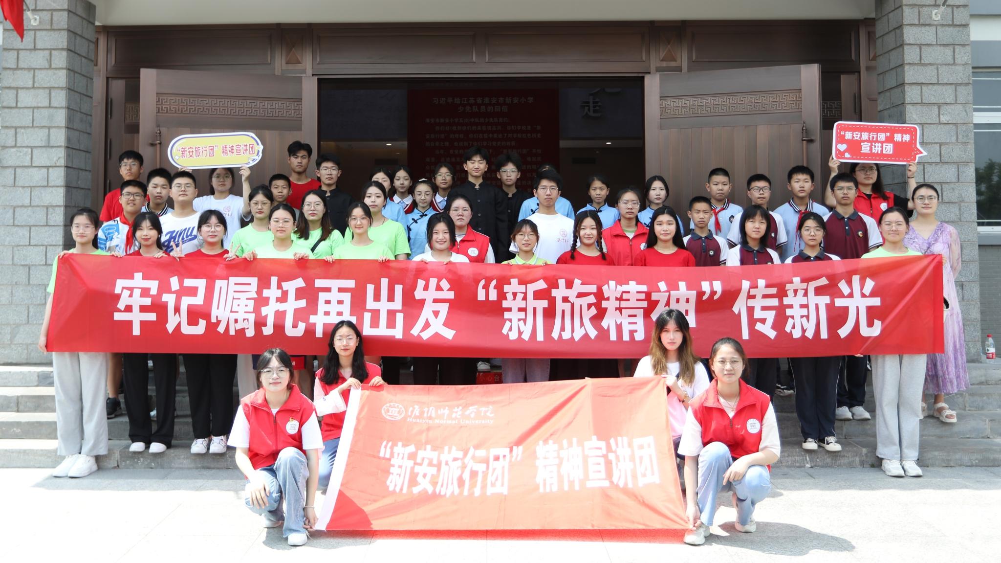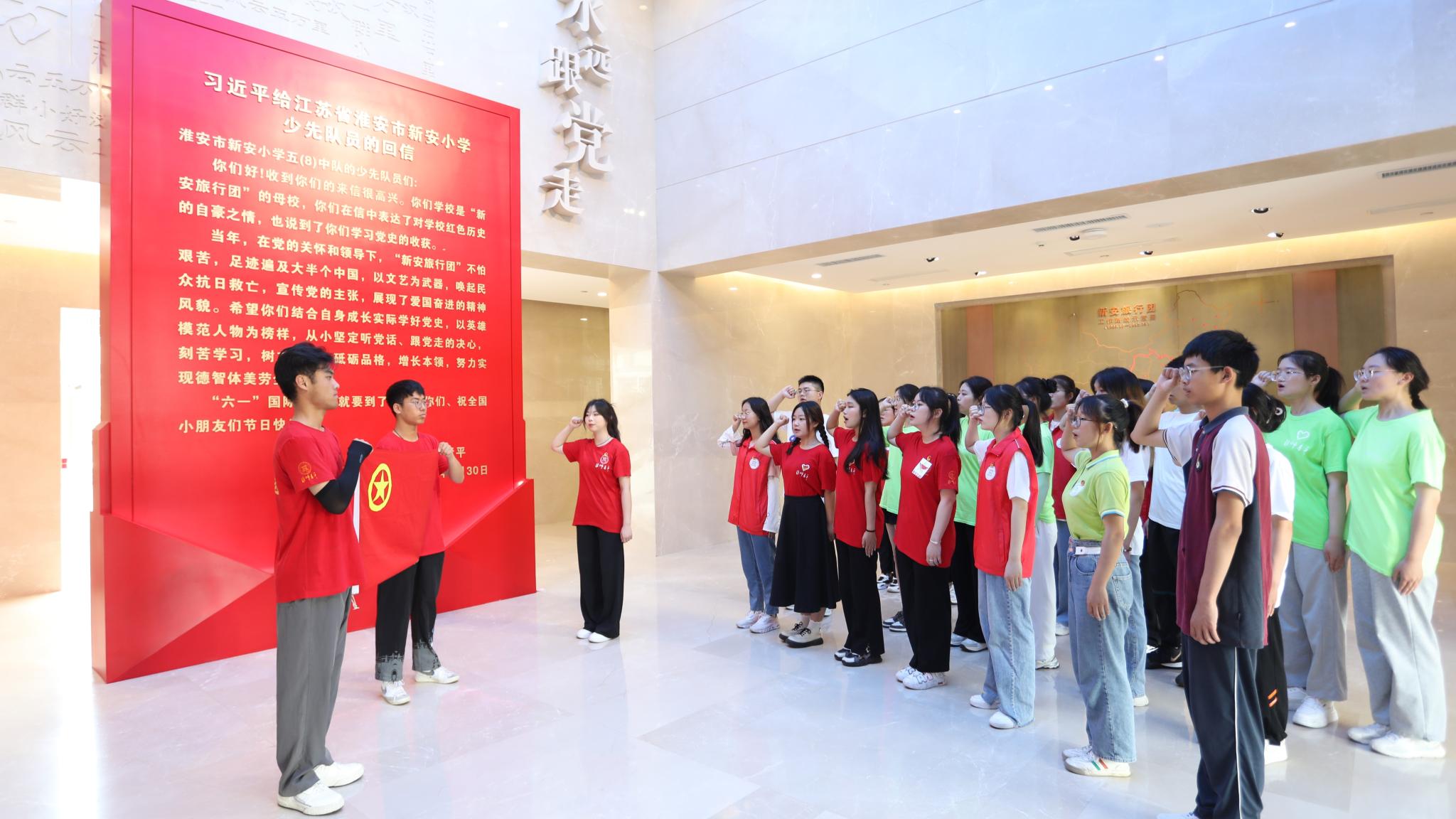 近日,传媒学院、教科院“新安旅行团”精神宣讲团走进淮安市新安小学开展暑期“三下乡”社会实践活动,并邀请淮安市清河开明中学、800cc全讯白菜第一附属小学的同学共同参与本次红色研学活动,手拉手追寻“新旅”足迹,深耕红色血脉,共同体验沉浸式“青春思政课”。