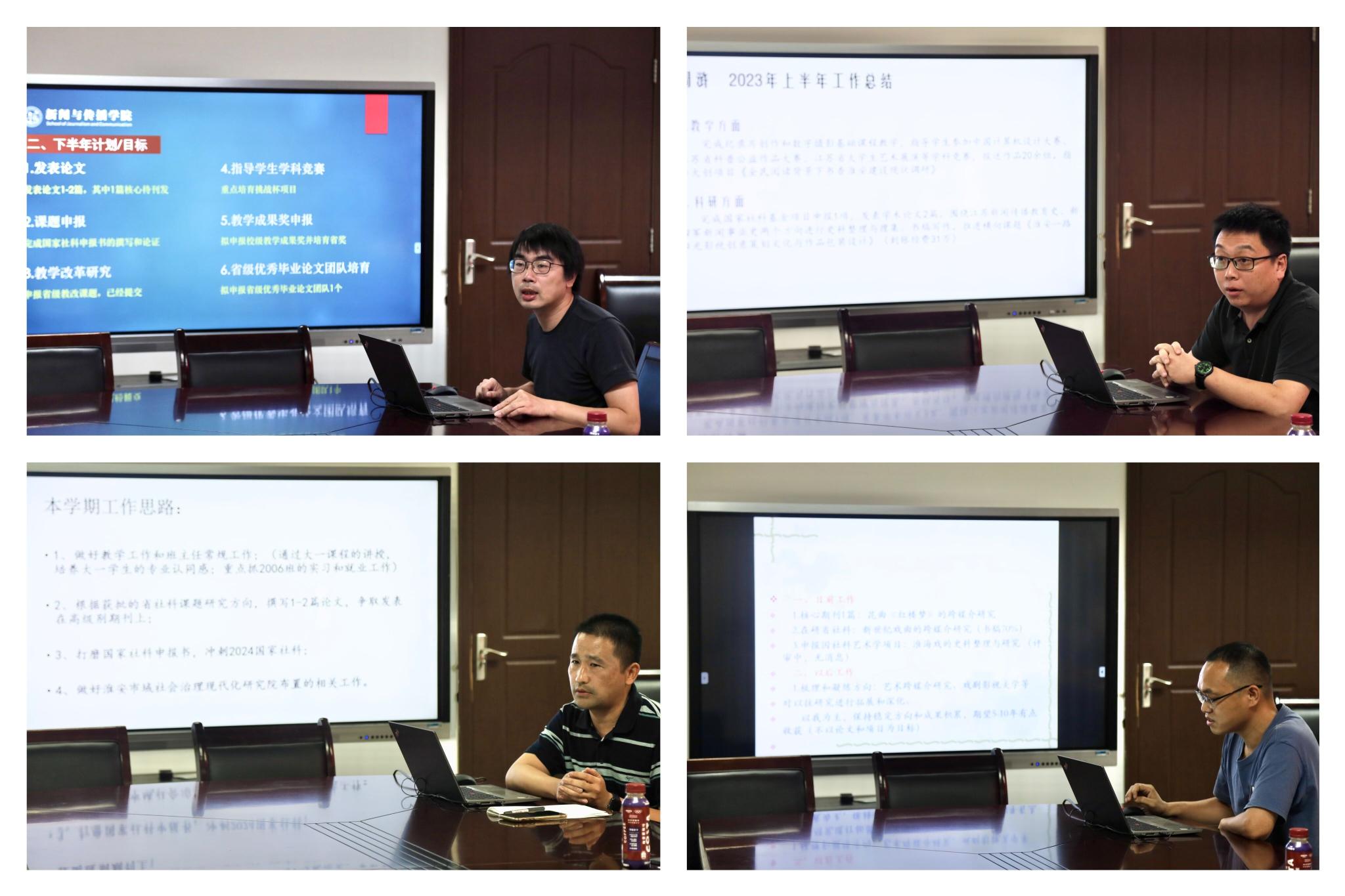 全体专任教师通过PPT汇报展示个人在2023年教学、科研、社会服务等方面取得的成绩以及个人研究方向、未来工作计划展望等,沙龙气氛活跃,大家畅所欲言,为学院学科发展、专业建设、对外合作、学生教育等方面积极建言献策,提供思路。
