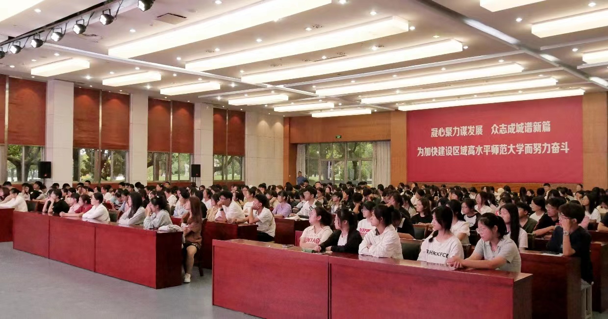 曹静宜详细介绍了学院学生工作体系 、学生党员组织发展以及主题教育月特色文化活动等。她希望同学们在淮师的四年里以优秀为伴、与勤奋为伍,努力做一个有理想、有追求、有抱负、脚踏实地的新传人,学院愿成为助力大家成长成才的加油站。