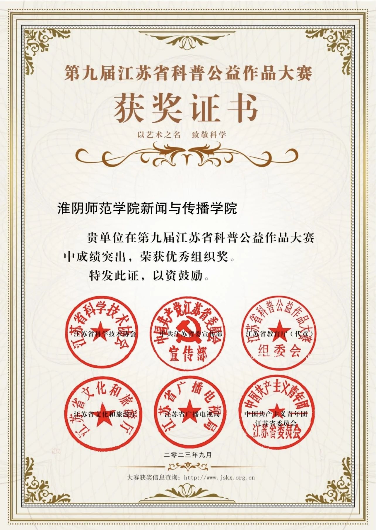 为深入学习贯彻党的二十大精神,加强国家科普能力建设,推动《江苏省全民科学素质行动规划(2021—2035年)》实施,激励公众特别是青少年和科技工作者参与科普创作,营造热爱科学、崇尚创新的社会氛围,提升全民科学素质,省委宣传部、省科协、省教育厅、省文化和旅游厅、省广播电视局、团省委联合举办第九届江苏省科普公益作品大赛。