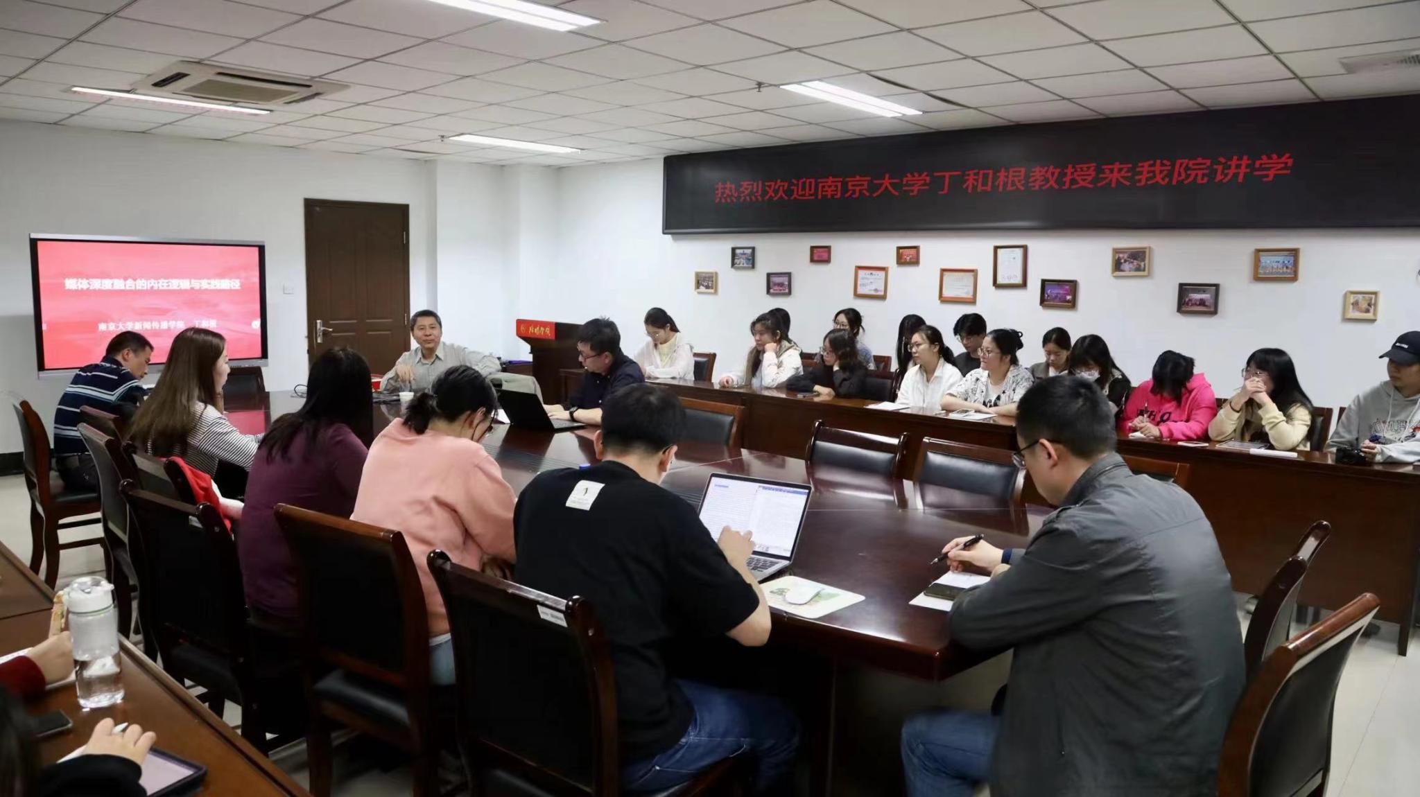 10月13日,新传学院邀请南京大学新闻传播学院丁和根教授作题为“媒体深度融合的内在逻辑与实践路径”的讲座,讲座由院长助理周浒主持,新传学院部分师生代表参加讲座。