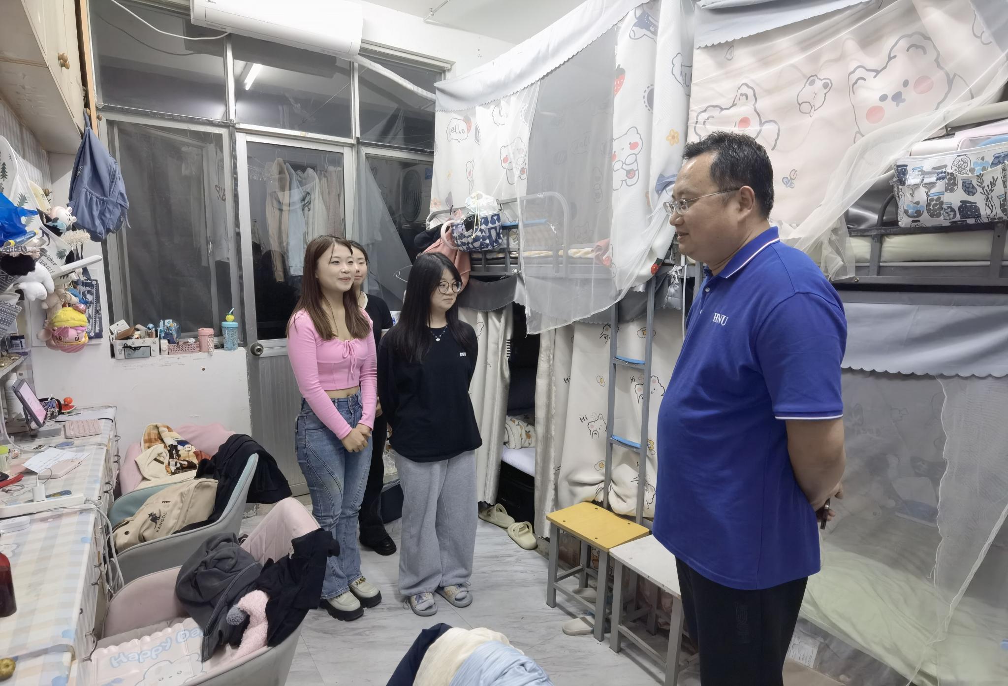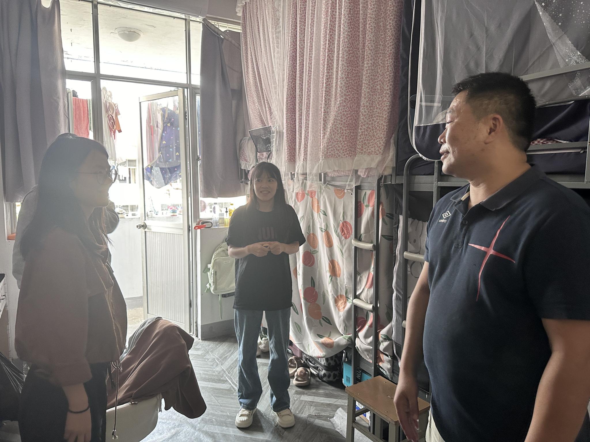 在宿舍走访过程中,学院领导和各班班主任们与同学们进行亲切交流,宣传新时代劳动教育重要性,及时掌握学生生活学习状态与思想动态,耐心解答同学们在思想、生活、学习上遇到的问题,强调要进一步筑牢思想防线和安全底线,严格遵守学校各项规章制度,保持良好的学习状态,加强体育锻炼,保持宿舍环境卫生,并鼓励学生珍惜大学时光,不断提升个人素质,争做堪当大任的新时代青年。