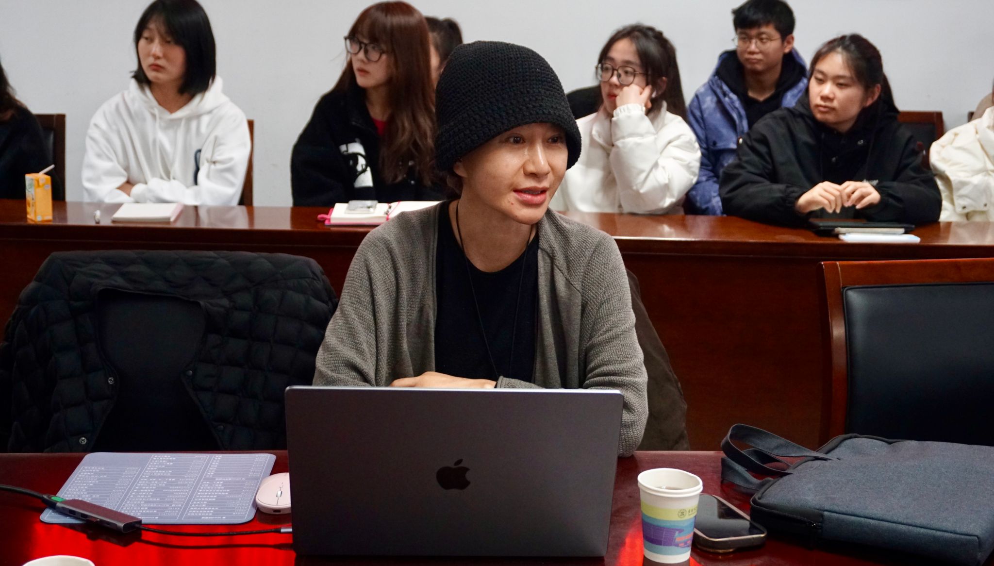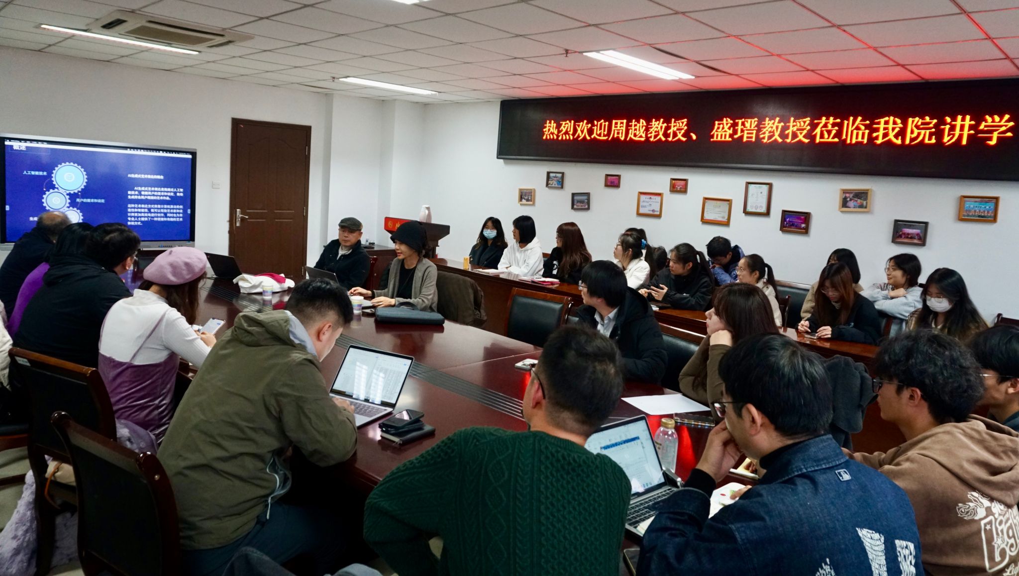 现场,两位教授与老师们就AI艺术展开热烈探讨,现场气氛活跃。此次讲座进一步开拓了师生的专业视野,为专业学习提供了新思路与新借鉴。