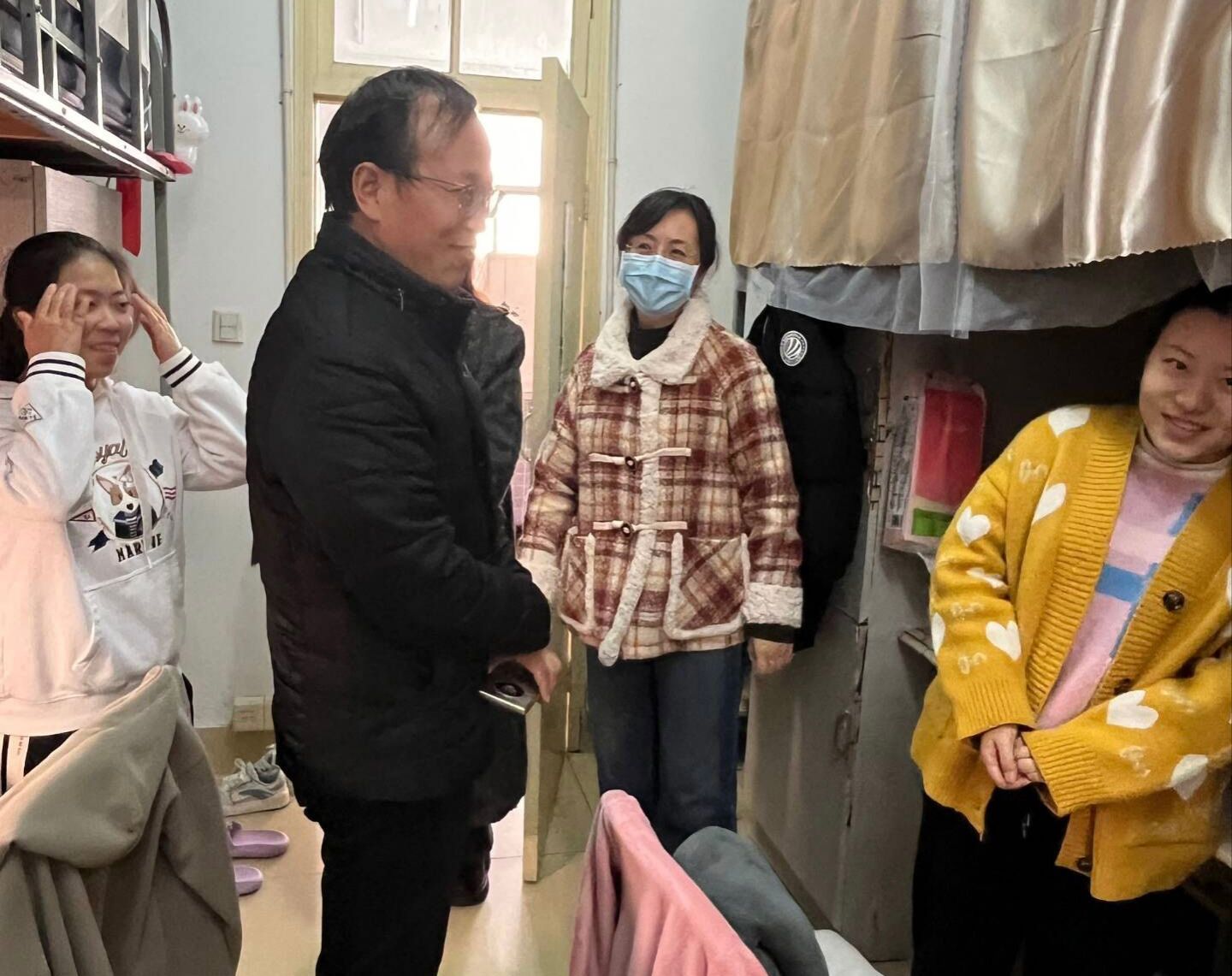 活动中,学院党政领导班子、辅导员、班主任、学生党员齐上阵,从思想上动员,行动上助力,按照四“无”、三“齐”、两“不”、一“有”的标准指导学生开展安全文化进学生社区活动。重点加强了对宿舍卫生和安全情况的排查,严查是否存在违规电器,并对宿舍安全隐患进行提醒,对各种可能存在的卫生问题和安全隐患进行了重点检查和督促整改。走访中,针对近期考研学生学习压力大、过度焦虑、信心不足等问题,老师们以本次宿舍走访为契机与考研学子谈心谈话,了解学生在最后冲刺阶段的学习状态以及备考期间生活学习的困难,为学生答疑解惑,加油鼓劲,在寒意满满的严冬为考研学子送上“家人般”的守护与温暖。
