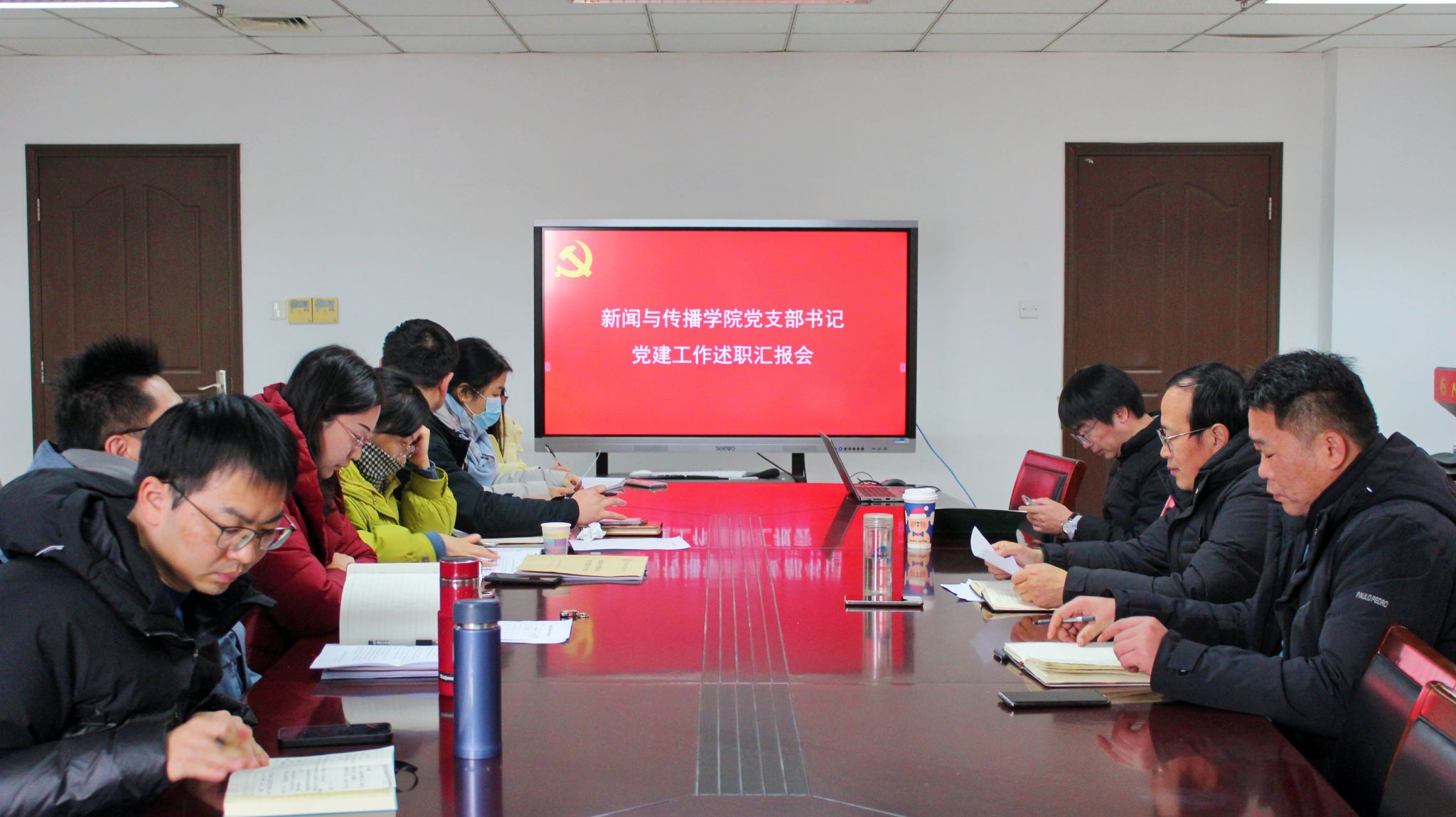 12月19日,新传学院举行党支部书记述职汇报会,学院党委理论学习中心组全体成员参会,会议由学院党委书记任守军主持,会上学院教师第一党支部书记李晓燕老师、教师第二党支部书记徐珊老师、教师第三党支部书记李德顺老师、学生第一党支部书记曹静宜老师、学生第二党支部书记黄晗老师从本支部一年来的工作履职情况、存在的不足以及未来工作计划等方面分别进行了述职。任守军总结各位党支部书记的述职客观全面,全面细致总结了一年来本支部的工作开展情况,并能够将本支部存在的问题找出来,对未来的党支部工作有思考、有规划,他希望各位党支部书记能够立足于本支部的师生党员专业特点,主动发挥本支部的优势,定期开展党日活动,凝练党支部工作特色和亮点,形成“一支部一品牌”。