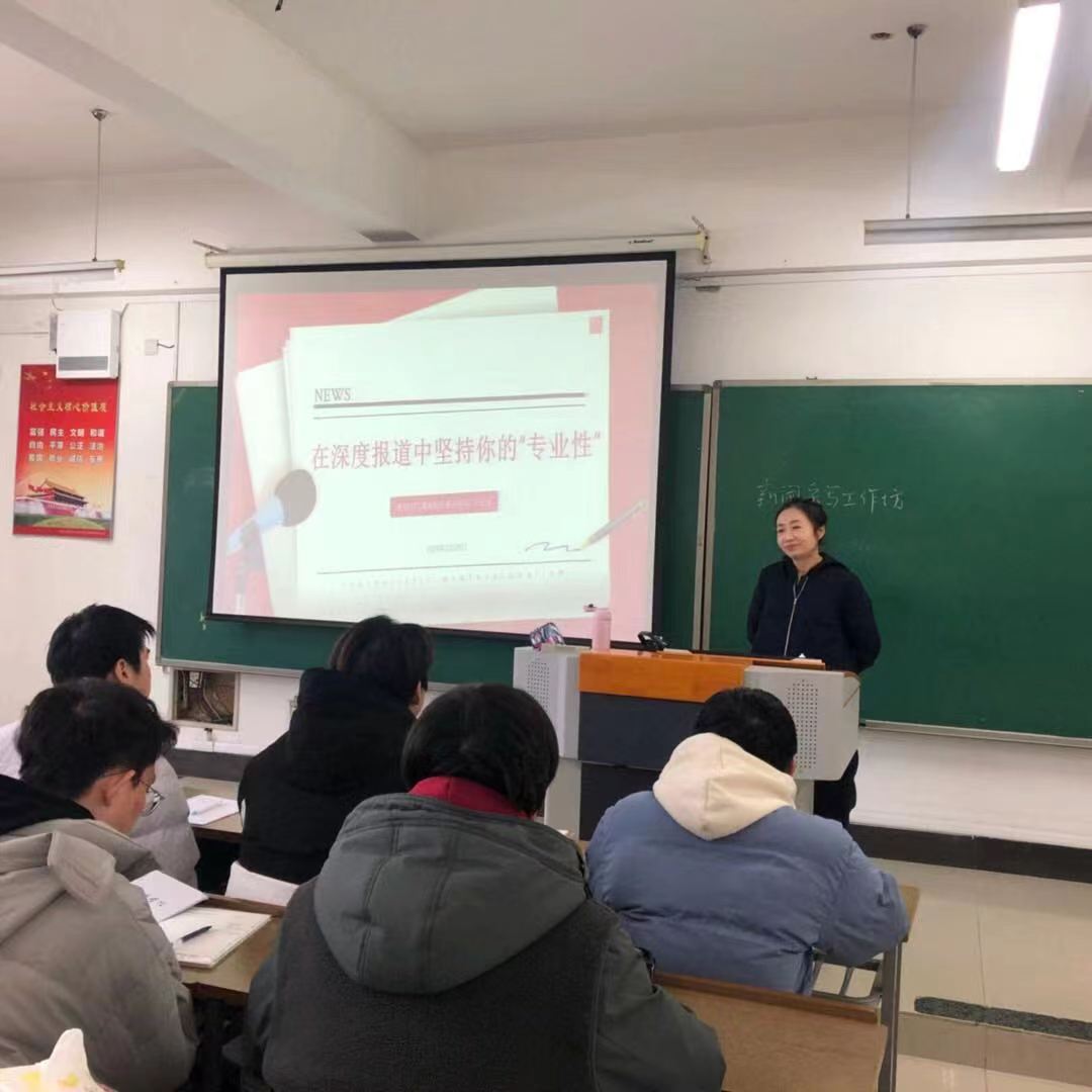 2月29日上午,淮安电视台报业中心记者王元元应邀到我院为同学们开设了一场关于深度报道写作的讲座,本次讲座由《深度报道写作》课程任课教师王新鑫老师主持。讲座围绕“在深度报道中坚持你的‘专业性’”这一主题从多个方面为同学们展开讲述了专业记者的系列认知与理解。