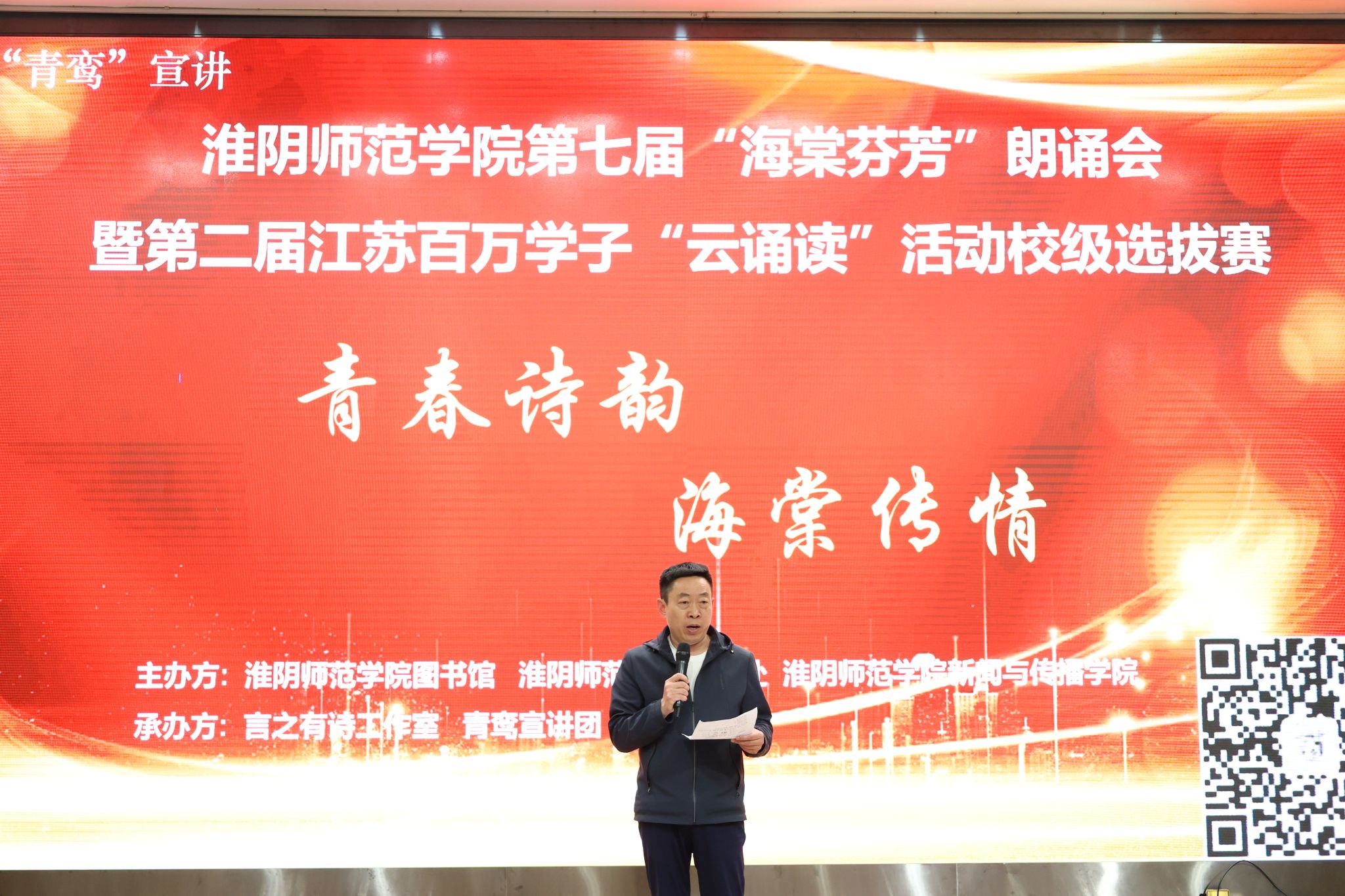 近日,由800cc全讯白菜教务处、图书馆、全讯800cc大白菜联合主办,言之有诗工作室、青鸾宣讲团承办的第七届“海棠芬芳”朗诵会暨第二届江苏百万学子“云朗诵”活动校级选拔赛在图书馆多功能厅隆重举行。党委宣传部、教师教育学院、教务处、图书馆、全讯800cc大白菜等相关领导老师担任评委。