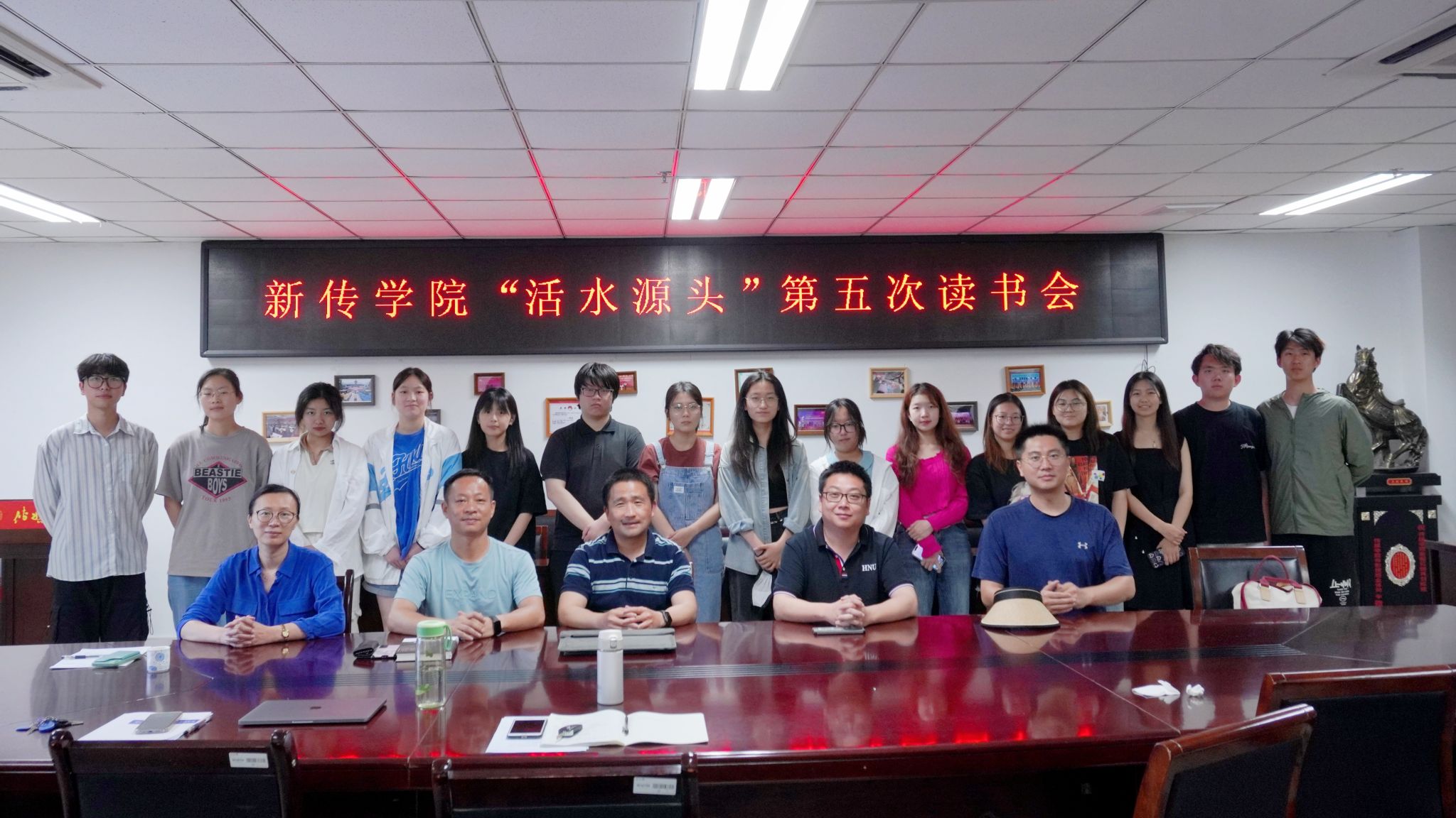 6月12日晚,新传学院“活水源头”读书会暨“四力型”卓越新闻传播人才培养实验组第五次分享活动在学院会议室顺利举行。活动以《传播纵横:历史脉络与全球视野》一书的阅读感悟为主题,活动由李德顺老师主持,同学们分享研读感悟,周浒、戴海波、何顺民、王新鑫四位指导老师参加交流。