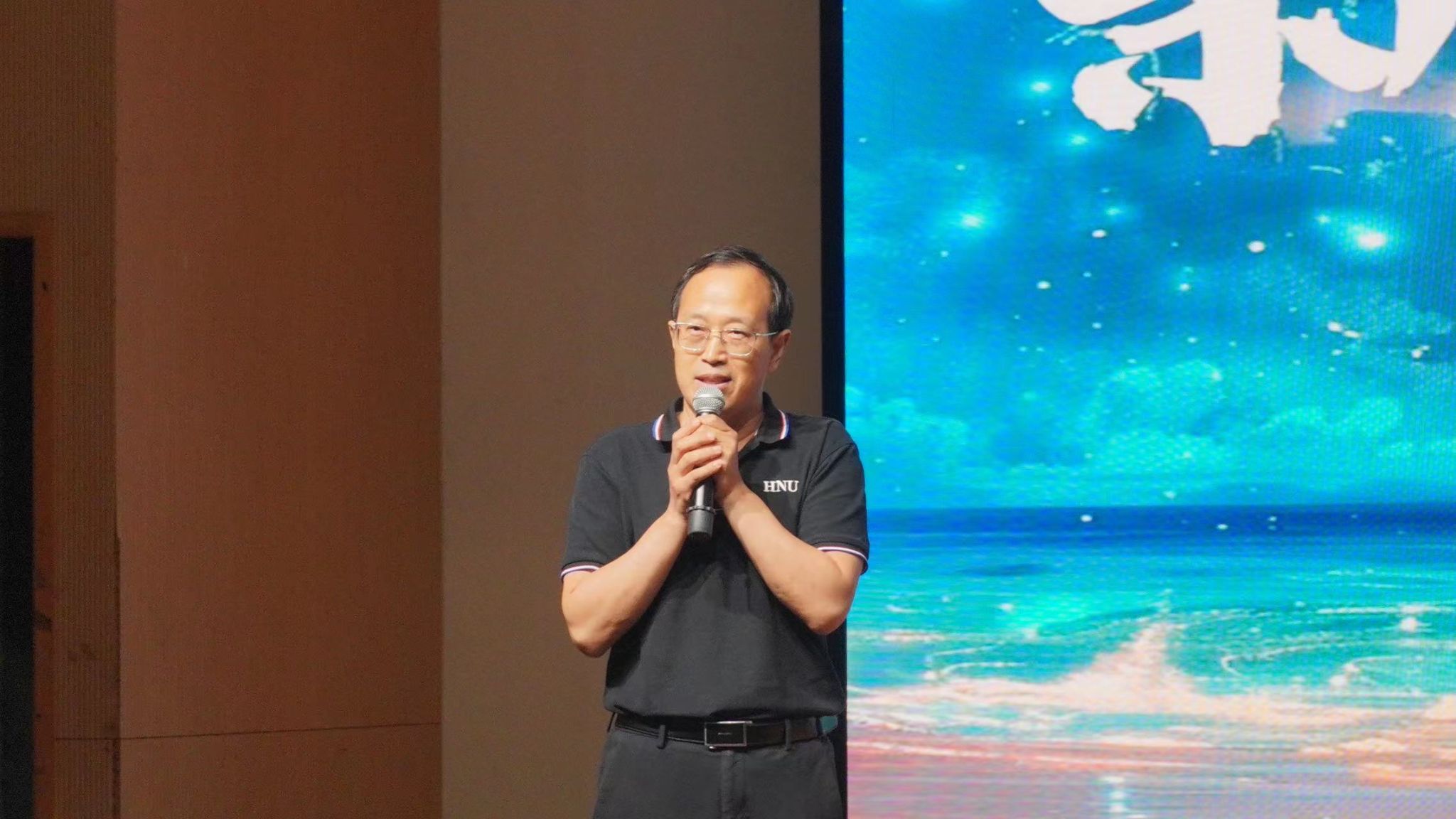新传学院院长奚路阳致辞,他代表学院向329名新同学表示热烈的欢迎和衷心的祝贺。他与新生分享个人感悟,期待新生成长为能够独当一面的传媒人,并提出三点希望:一是牢记自身的历史使命与责任;二是珍惜学习机会,不断积累知识与技能;三是努力向上,形成独立之人格,批判之思维。
