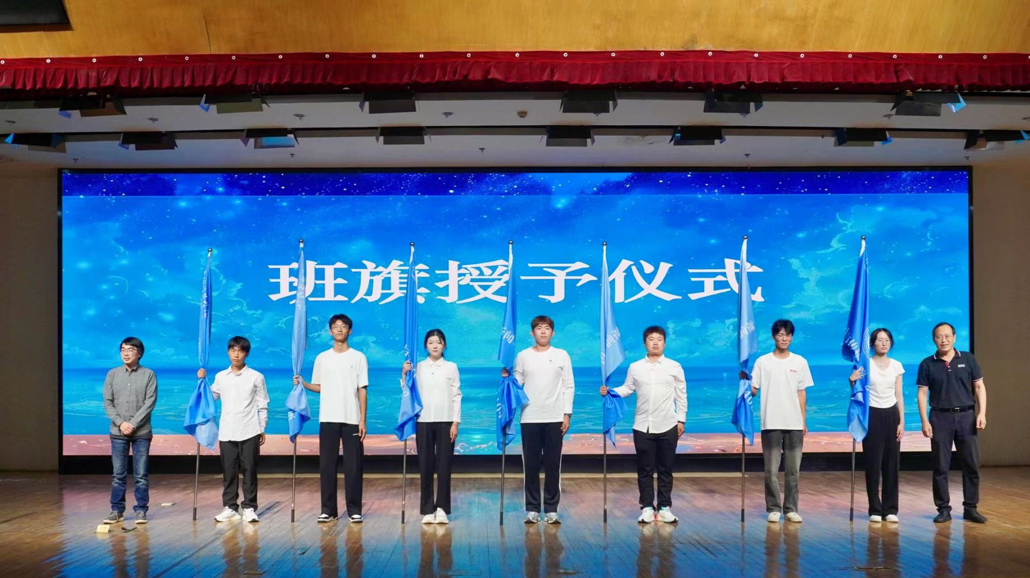 院党委书记任守军、院长奚路阳为2024级新生班级授予班旗。任守军对新生提出要求,一要明确奋斗目标,科学规划人生;二要积极应对挑战,早日转型成功。他希望新生们要勇敢面对学会自主学习、学会生活、学会与人合作三大挑战,并祝愿新同学的大学生生活圆满成功。