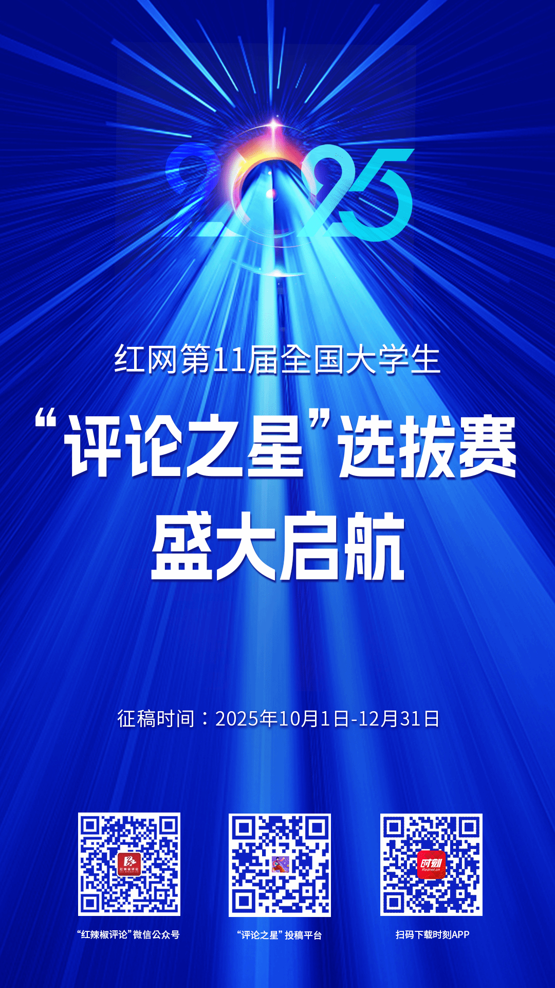 为发掘更多时评新星,培养更多时评新人,让更多热爱时评写作的大学生有展示自我的舞台,加强新闻评论学界与业界的联动融合,培育新一代全媒体评论人才,红网将于2025年10月1日起正式开启投稿通道,面向全国所有高校大学生征集参赛作品。