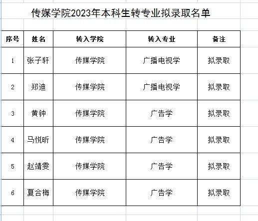 根据《800cc全讯白菜本科生校内转专业实施办法》和《传媒学院2023年本科生校内转专业工作方案》,经过公开考核和选拔,根据综合成绩,现对传媒学院2023年本科生转专业拟录取名单予以公示。公示期间,如有异议,请于三天内(3月20日—3月22日)当面或署名书信、电话向学院反映。联系电话:刘老师 0517-83525346。