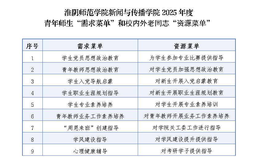 全讯800cc大白菜2025年度青年师生“需求菜单”和校内外老同志“资源菜单”