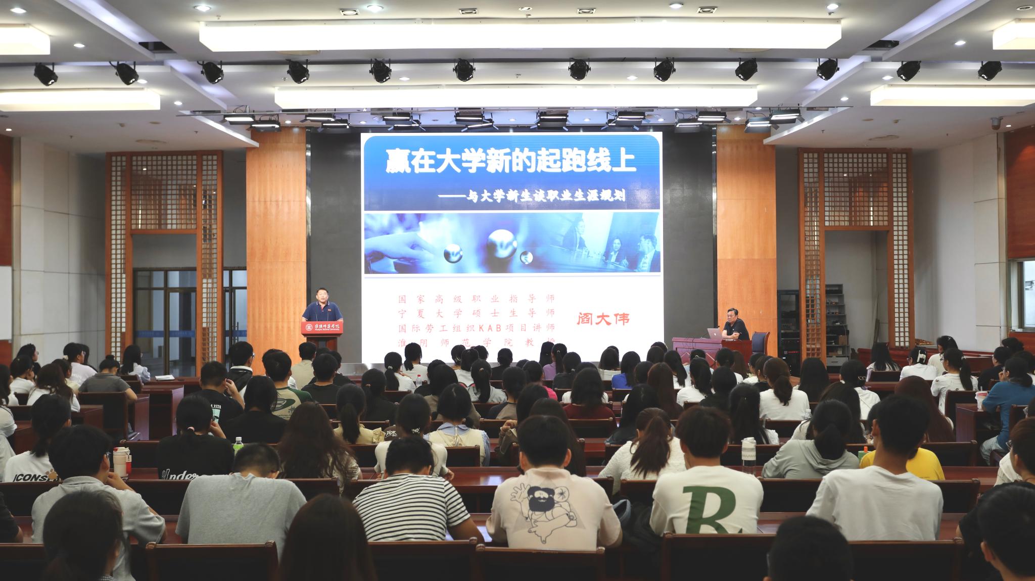9月12日上午,新传学院在图书馆多功能厅举办职业生涯规划讲座,特邀国家高级职业指导师阎大伟教授做专题报告,学院党委副书记刘东伟主持报告,2023级全体新生参加讲座。